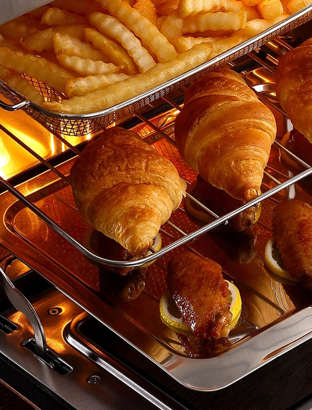 Grâce à la technologie Air Crisp, vos aliments sont préparés jusqu'à 2 fois plus rapidement que dans un four conventionnel et la teneur en huile est réduite jusqu'à 90 % – pour le même plaisir croustillant sans compromettre la santé.