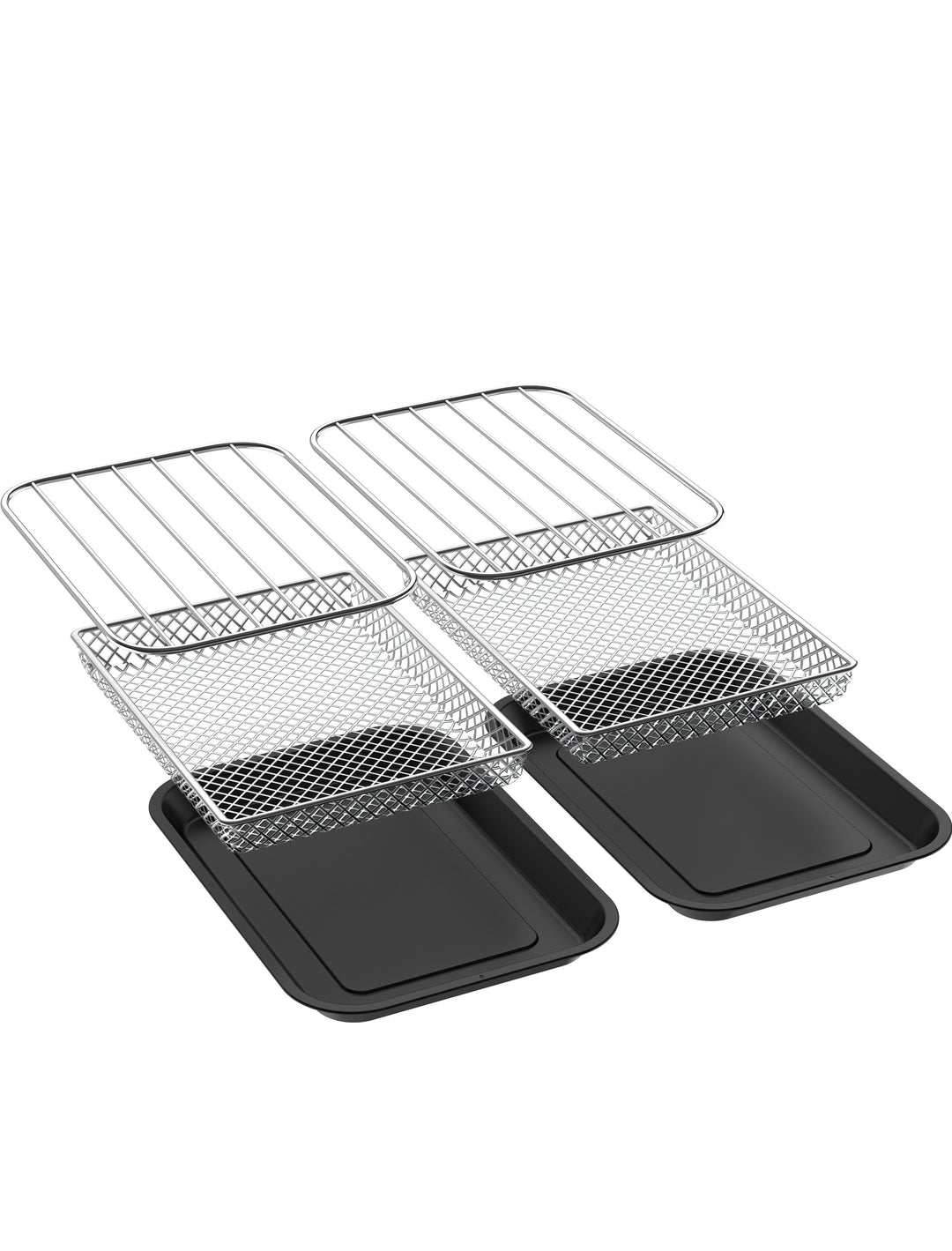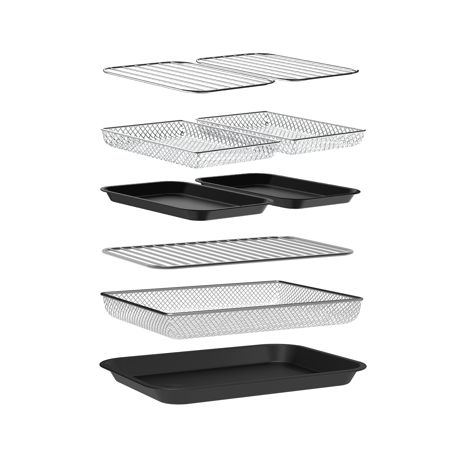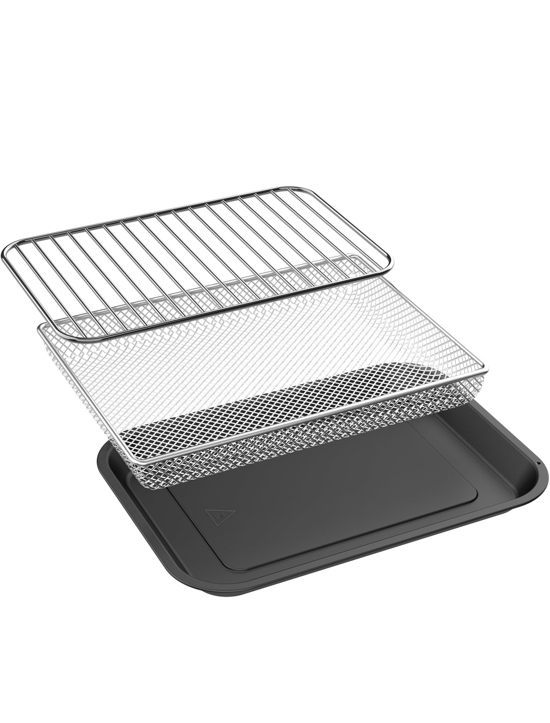 Le four à friteuse à air est livré avec les accessoires. Tous les accessoires sont antiadhésifs et vont au lave-vaisselle, ce qui rend le nettoyage rapide et facile.
