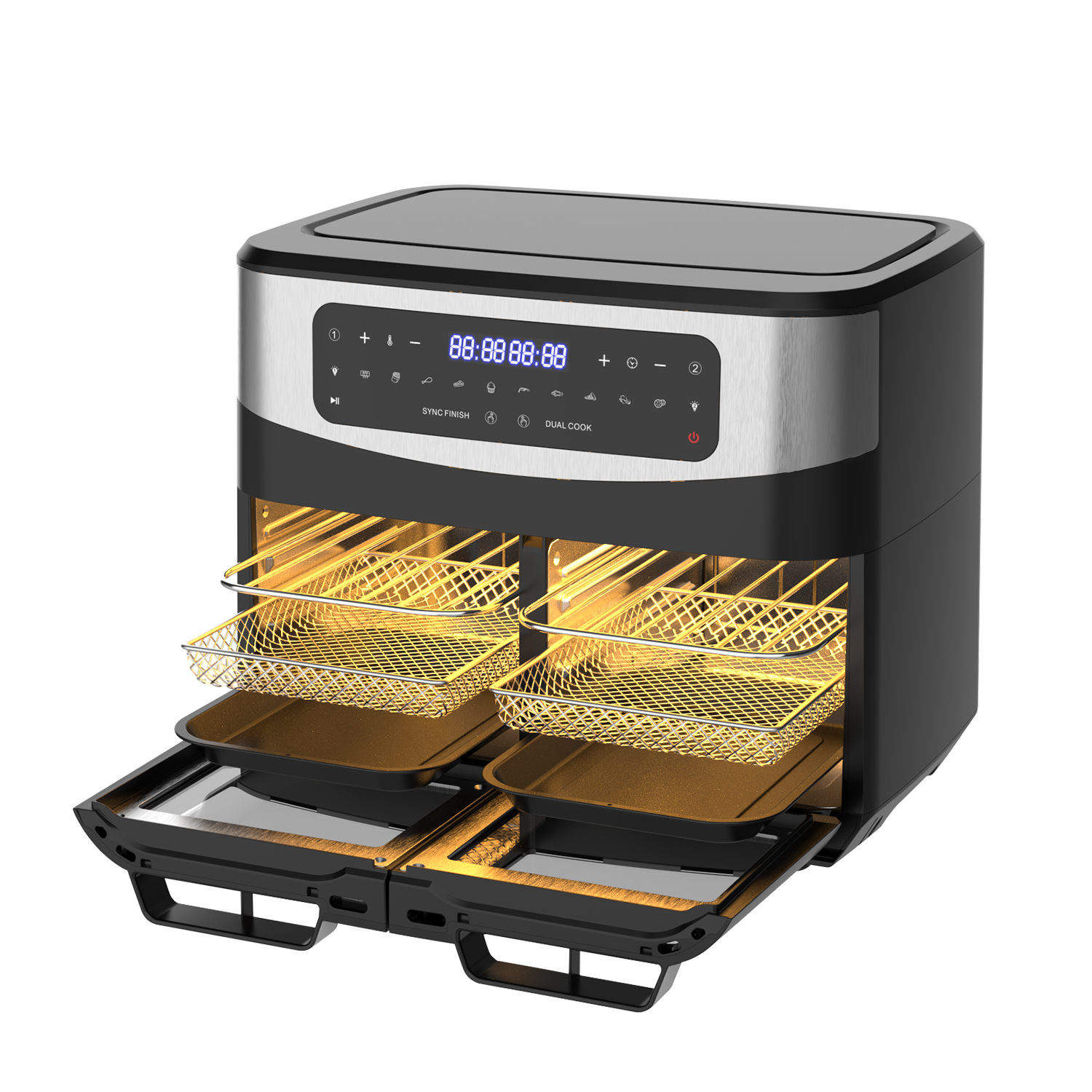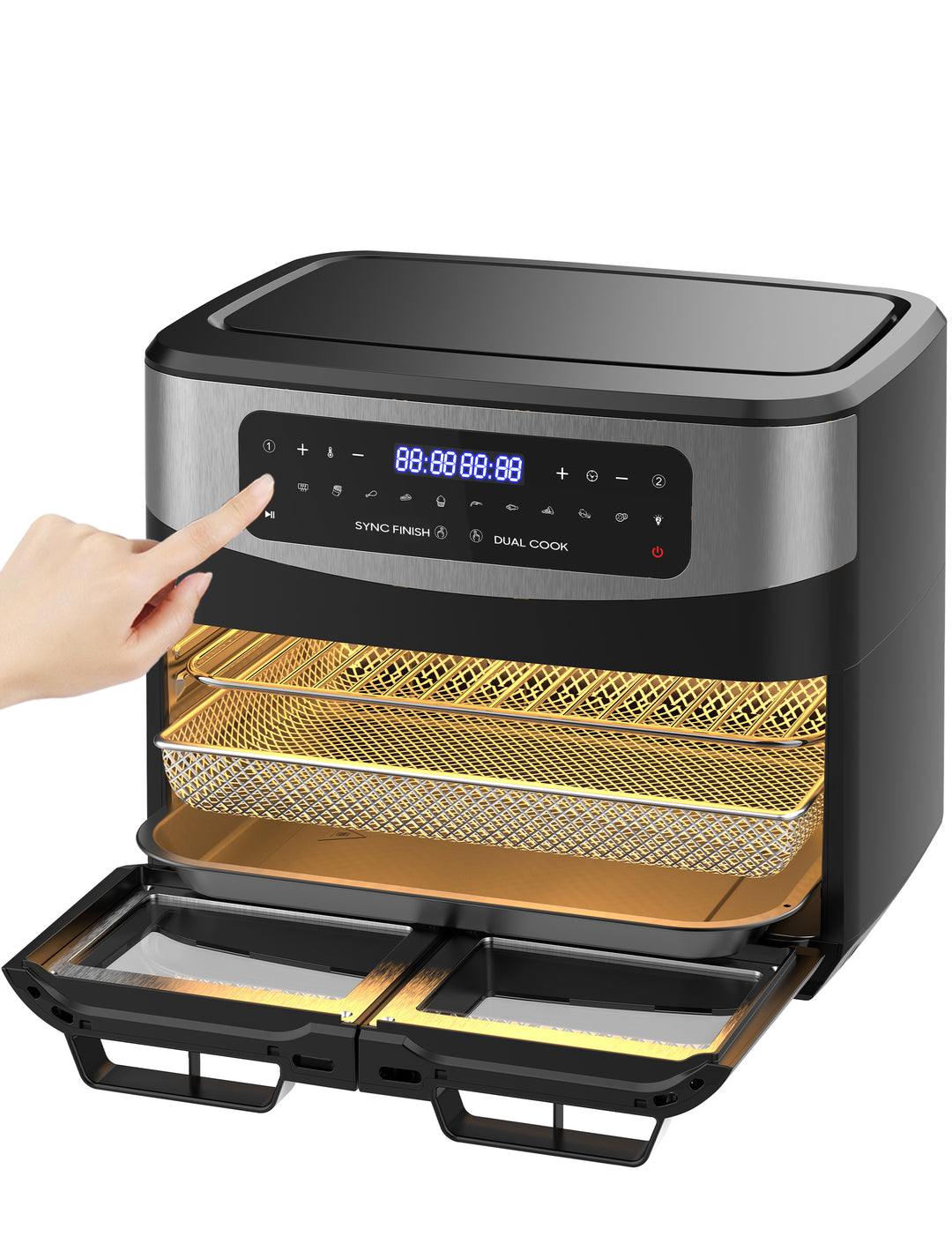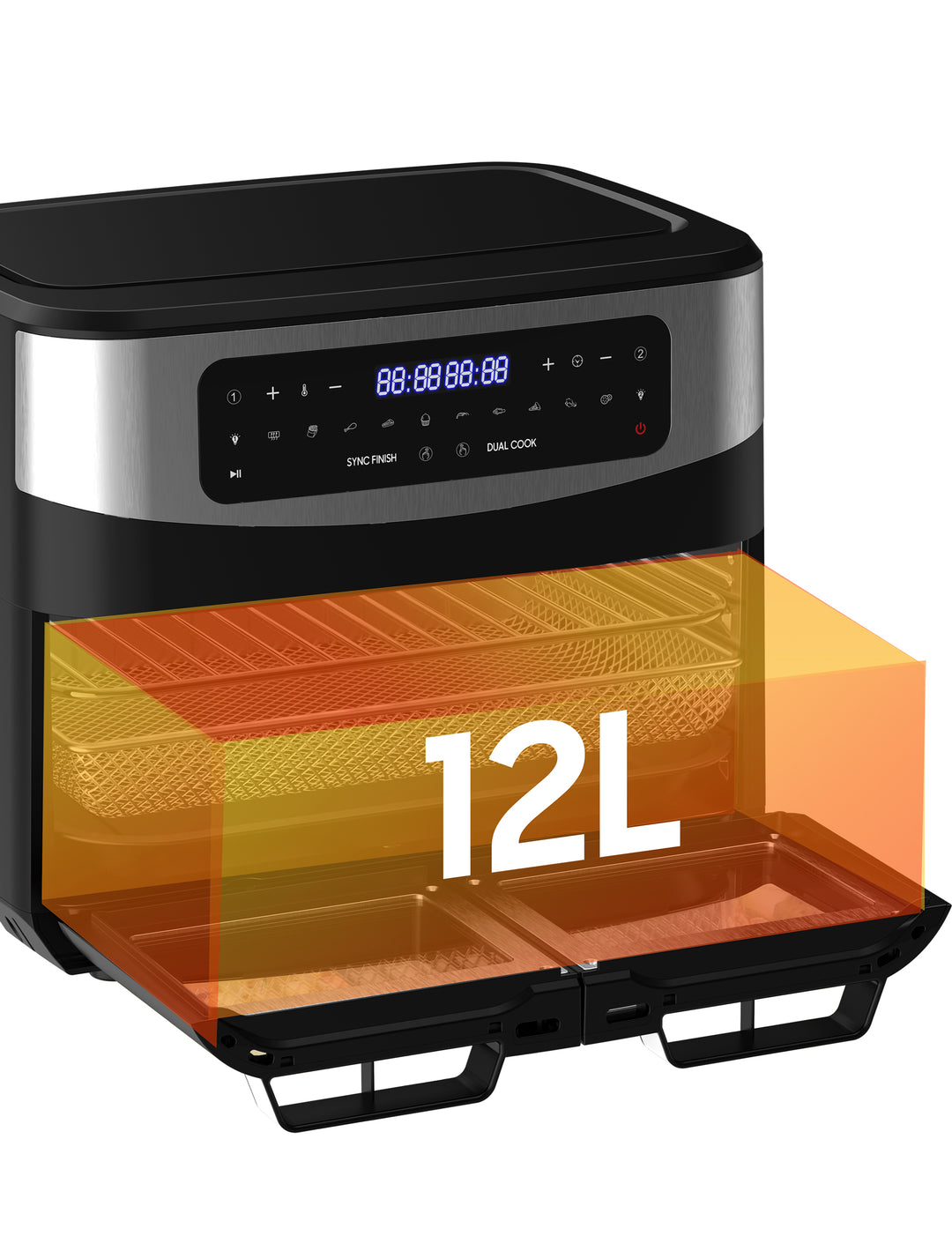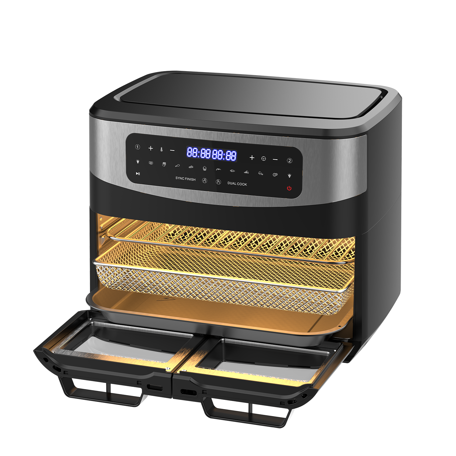 Le four à friteuse à air est livré avec les accessoires. Tous les accessoires sont antiadhésifs et vont au lave-vaisselle, ce qui rend le nettoyage rapide et facile.
