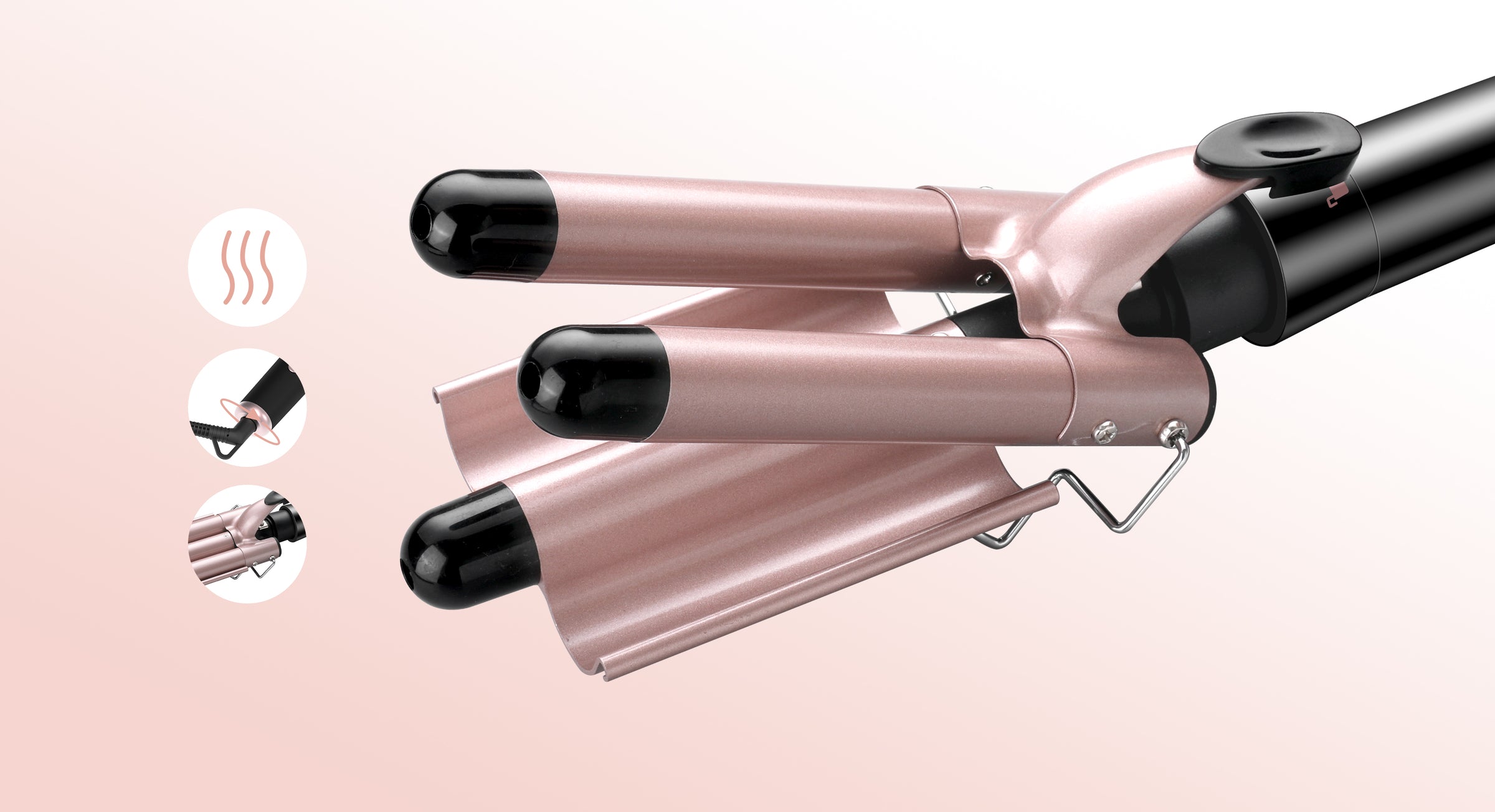 - 25mm fer à friser triple: convient aux cheveux bouclés moyens, aux ondulations de plage, aux cheveux bouclés en S, à la coiffure bouclée en céramique