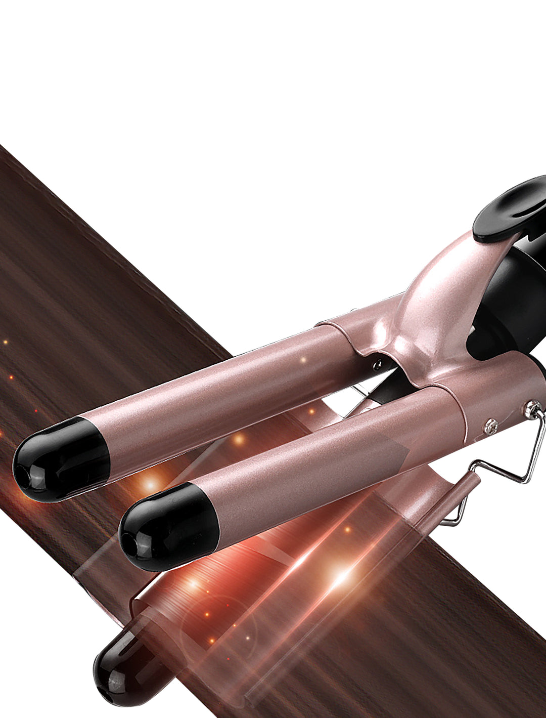 - Revêtement en émail céramique tourmaline: le fer à friser 3 fûts est spécialement composé d'émail céramique tourmaline, le PTC chauffe
