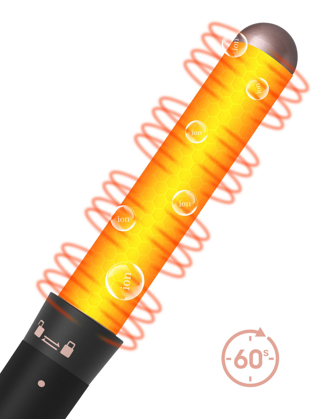 - Revêtement Céramique à Réchauffement Rapide 60S: design professionnel du fer à friser, matériau céramique tourmaline de haute qualité, principe de chauffage PTC, économise votre temps précieux