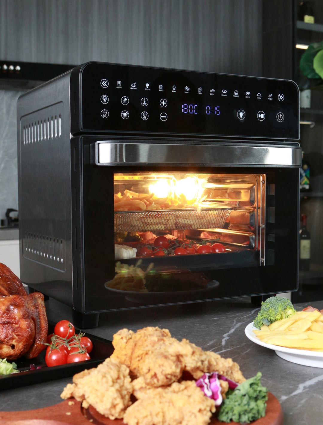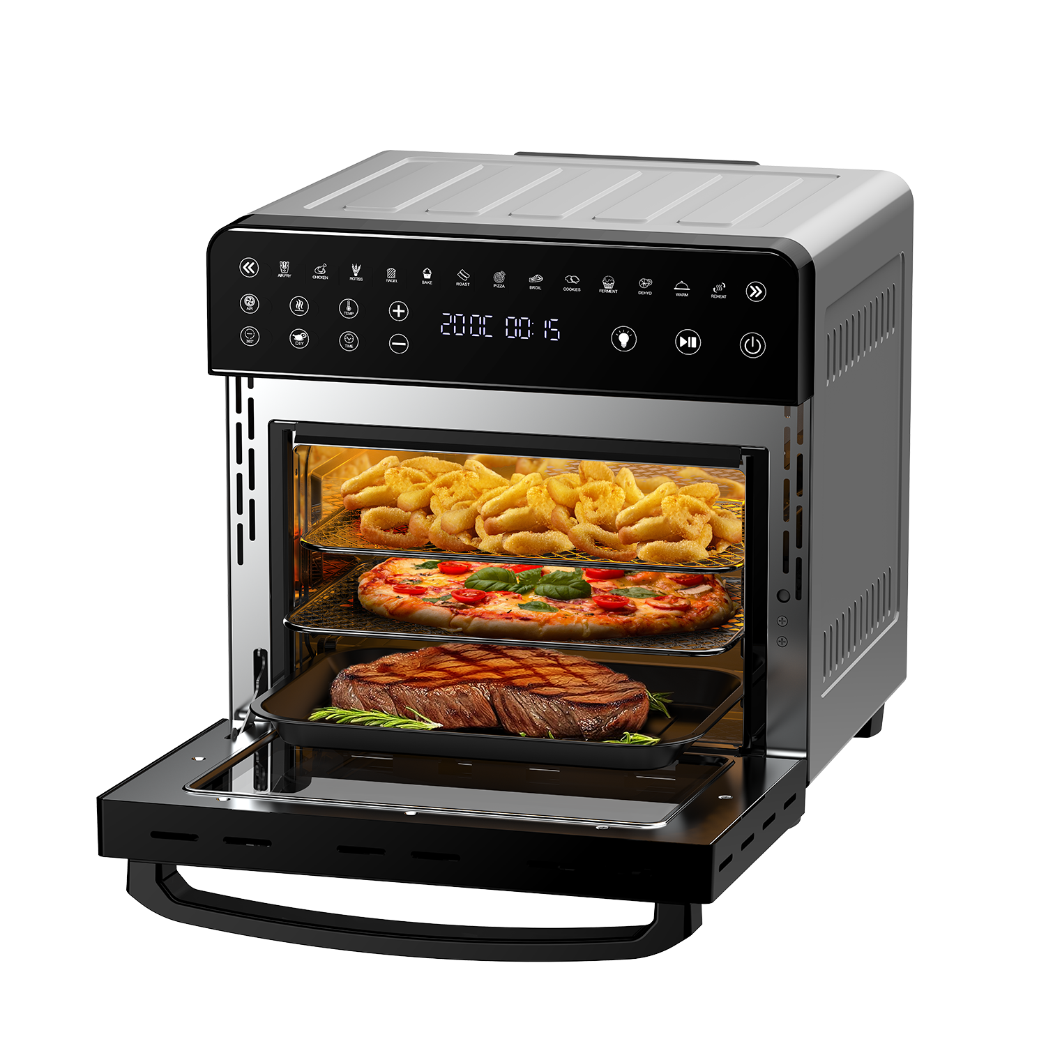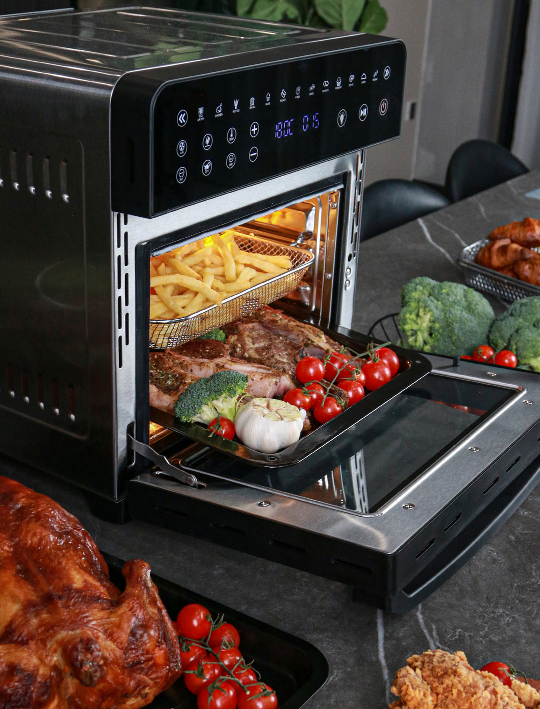 • Capacité de 15 litres: Avec une capacité généreuse de 15 litres, cet appareil offre suffisamment d'espace pour préparer de grandes quantités de nourriture. Vous pouvez facilement préparer des poulets entiers, des pizzas ou d'autres plats nécessitant une plus grande surface de cuisson