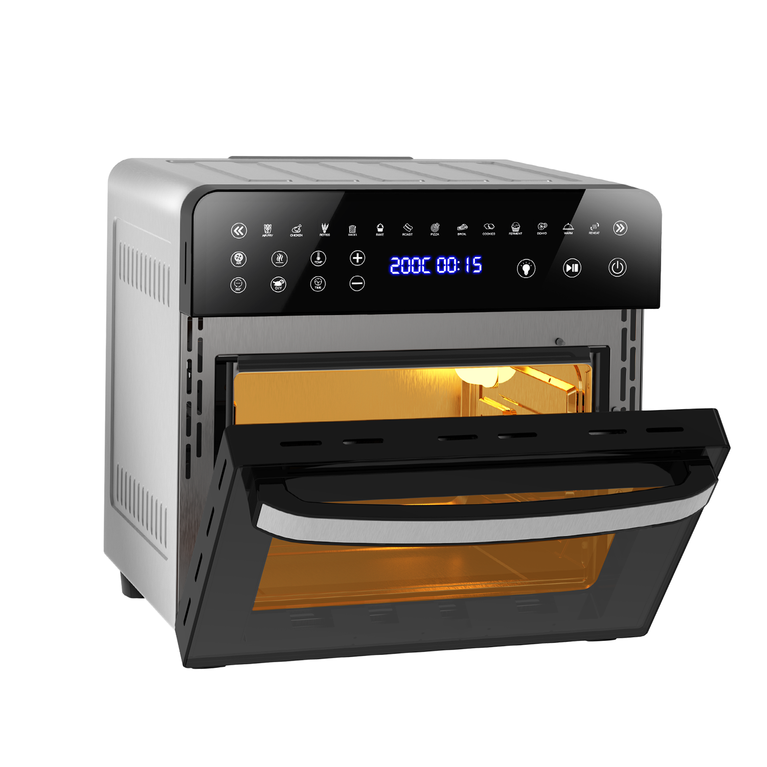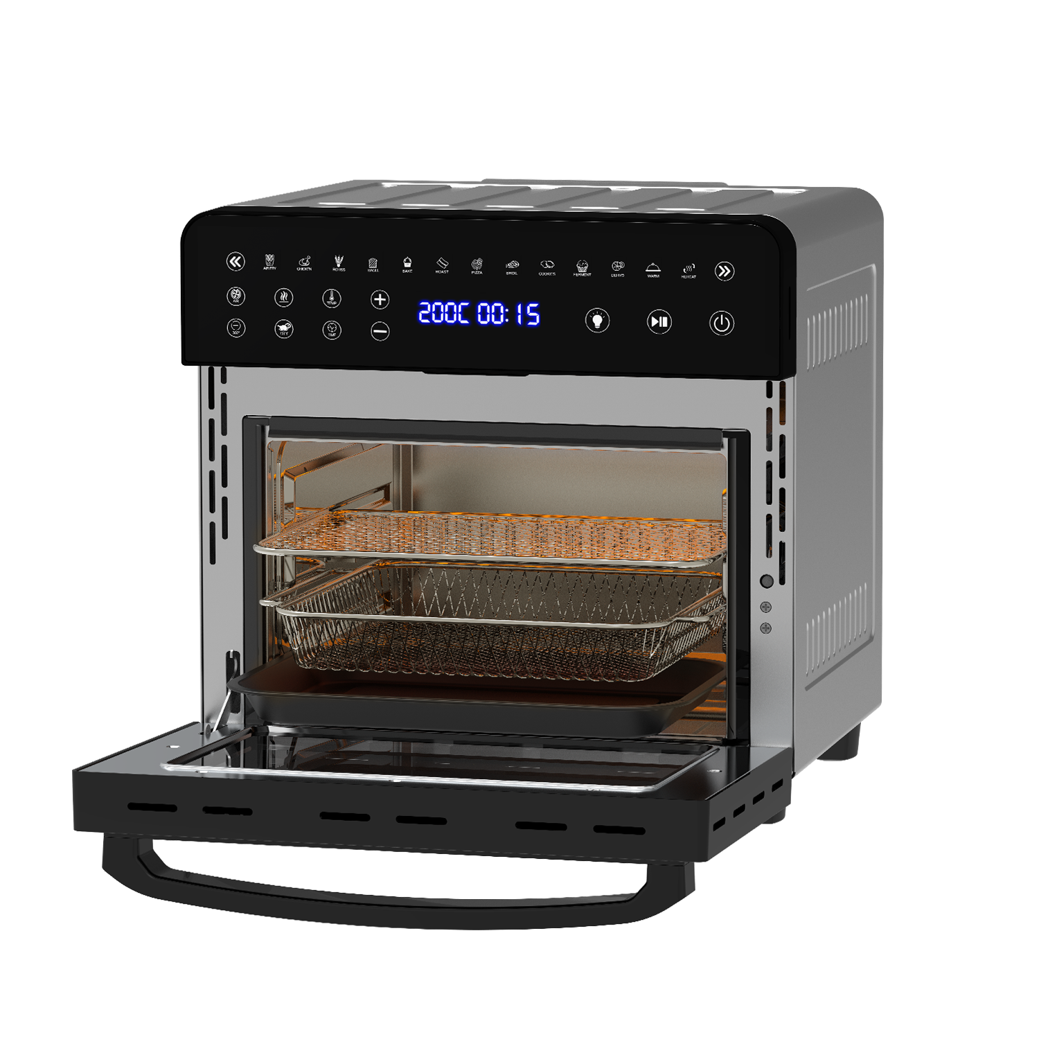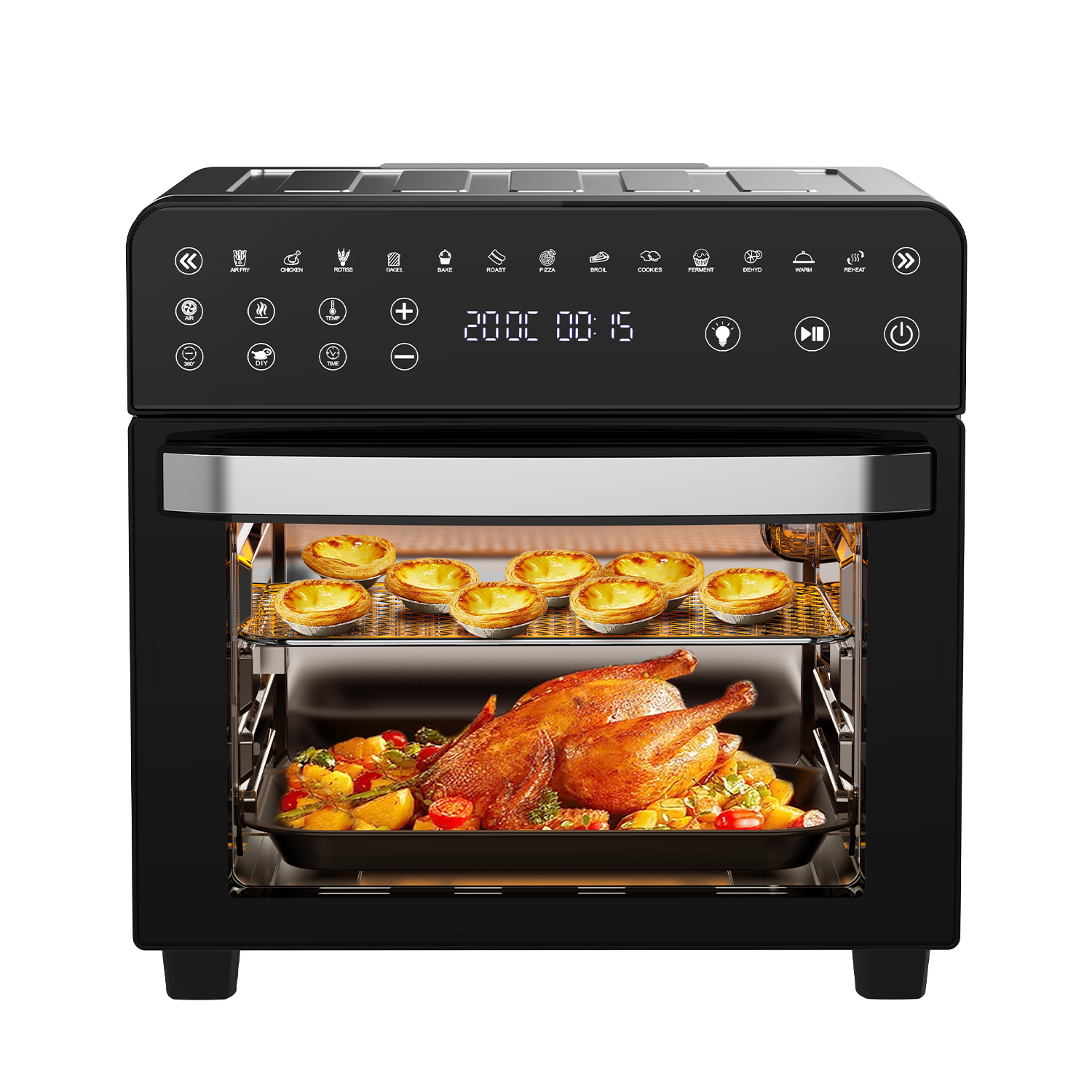 • Capacité de 15 litres: Avec une capacité généreuse de 15 litres, cet appareil offre suffisamment d'espace pour préparer de grandes quantités de nourriture. Vous pouvez facilement préparer des poulets entiers, des pizzas ou d'autres plats nécessitant une plus grande surface de cuisson