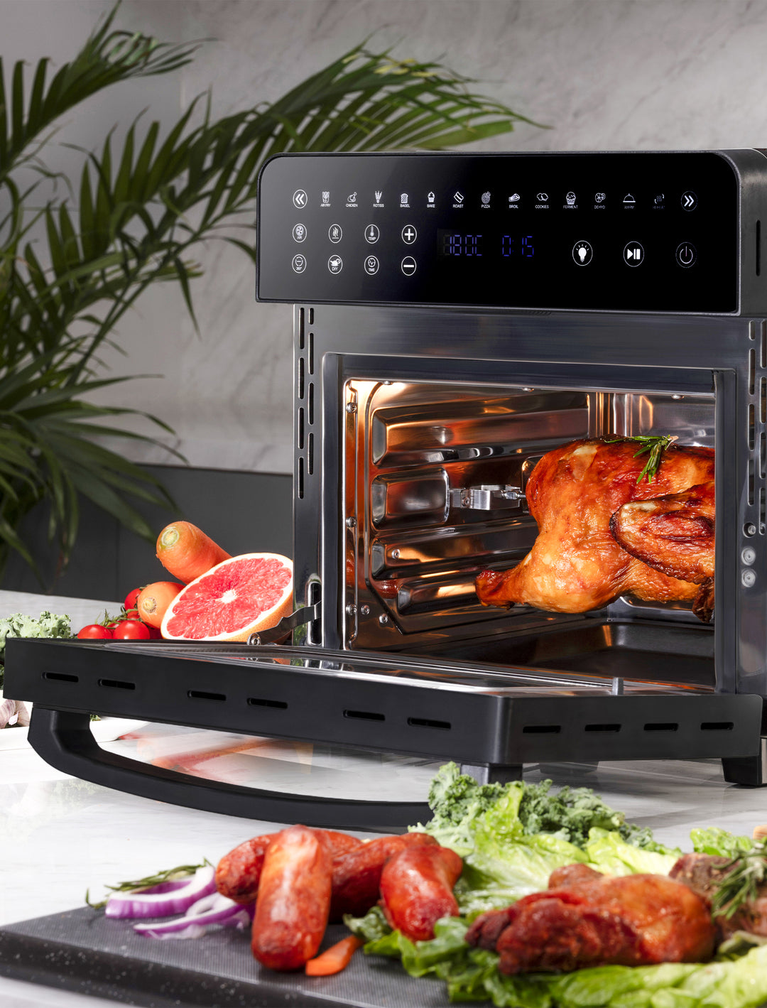• Capacité de 15 litres: Vous pourrez facilement préparer des poulets entiers, des pizzas ou d'autres plats nécessitant une plus grande surface de cuisson.