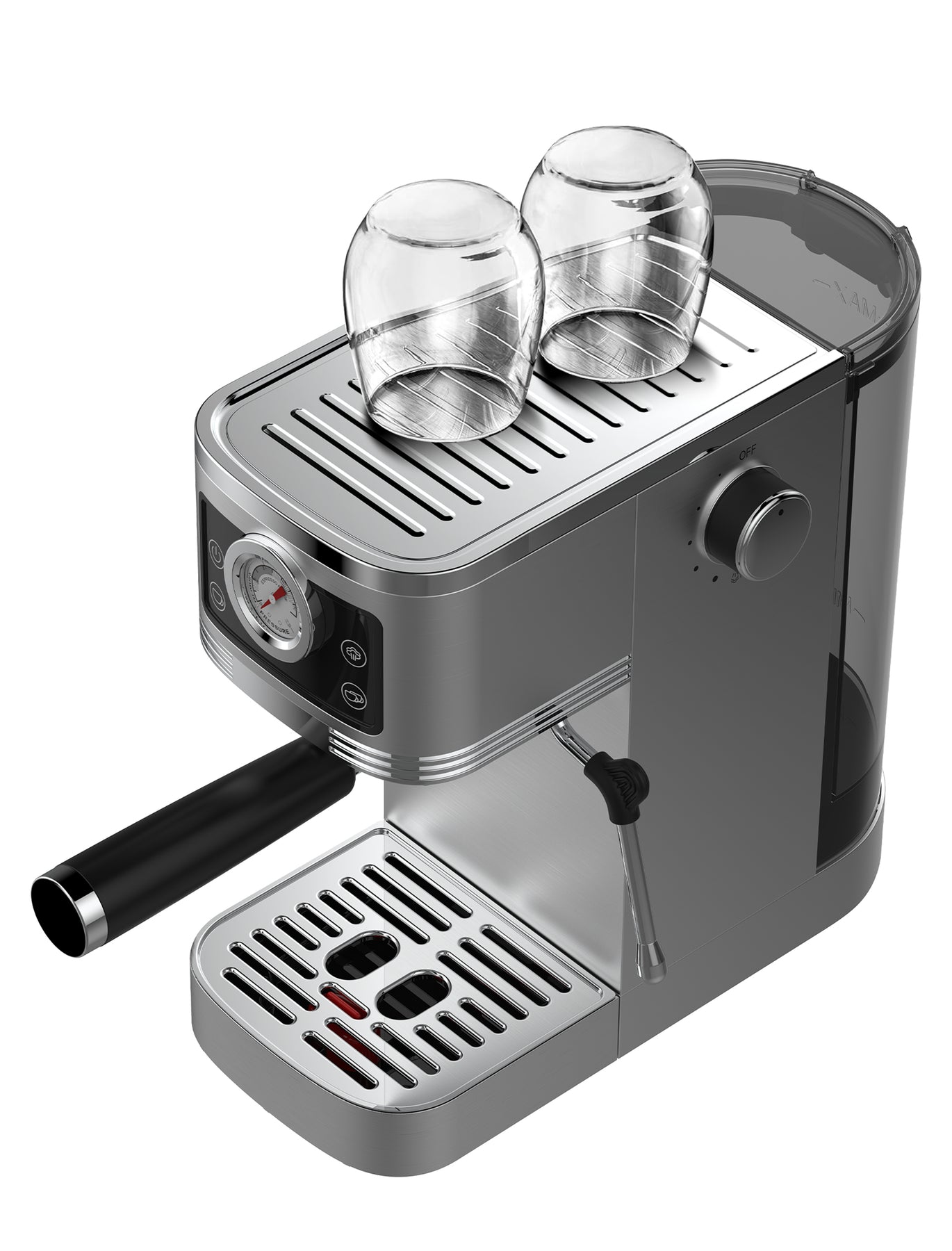 • Réservoir d'eau de 1,3 litre: Dotée d'un réservoir généreux, cette machine à café expresso permet de préparer plusieurs tasses d'expresso sans avoir à le remplir constamment. Sa capacité de 1,3 litre est idéale pour les familles ou les amateurs de café qui aiment partager des moments autour d'une bonne tasse. De plus, le réservoir est transparent, vous permettant de contrôler facilement le niveau d'eau restant