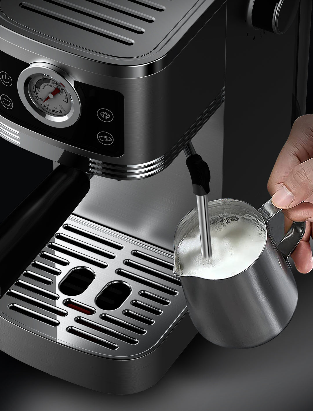 • Buse à mousse intégrée: La buse à mousse vous permet de créer facilement des textures de lait parfaites, transformant votre café en une œuvre d'art crémeuse, que ce soit pour des cappuccinos, des lattes ou des macchiatos
