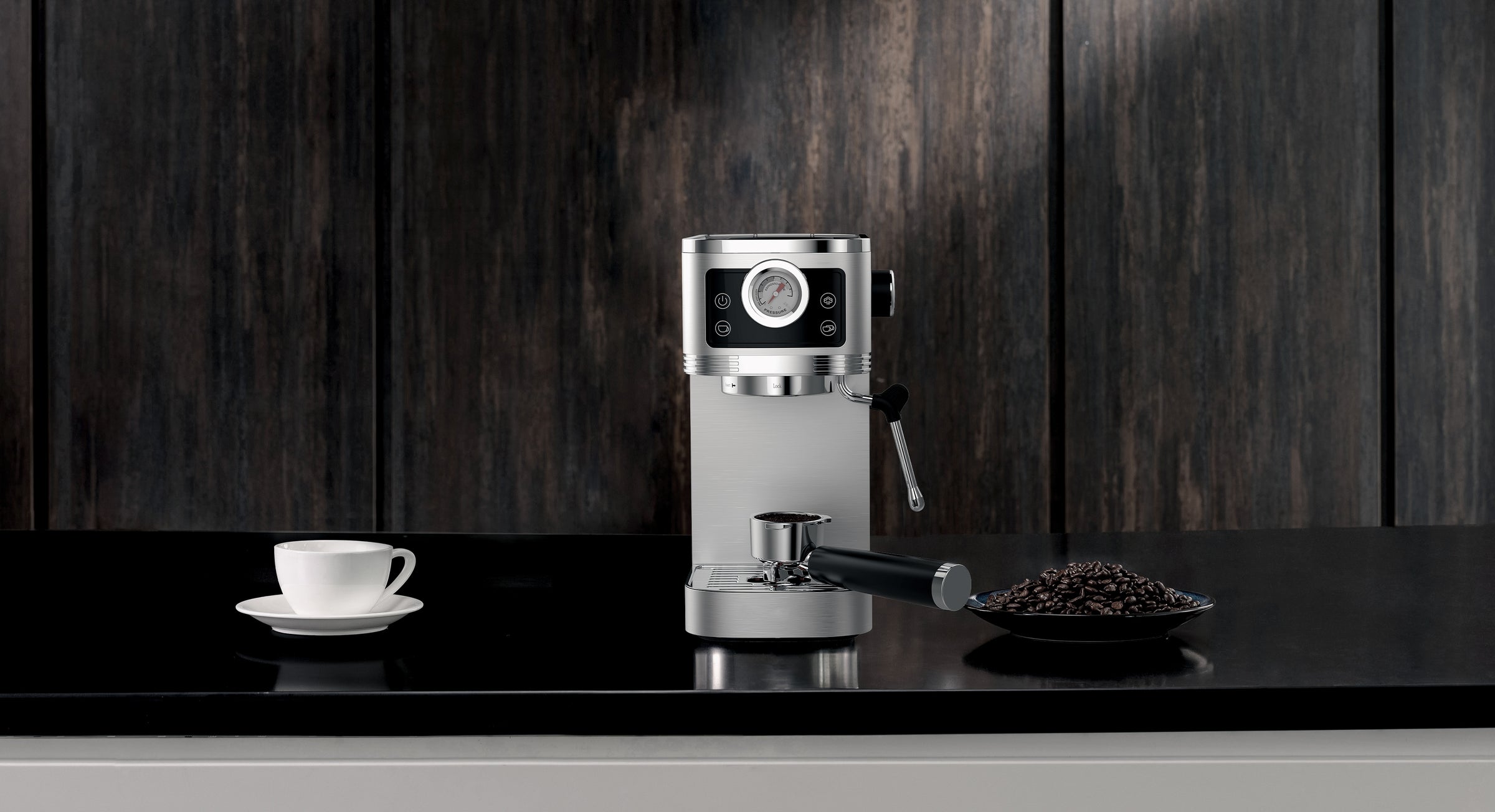 Design élégant: Avec ses lignes modernes et ses finitions soignées, cette machine à café expresso ajoute une touche de style contemporain à votre cuisine tout en étant un véritable objet de décoration